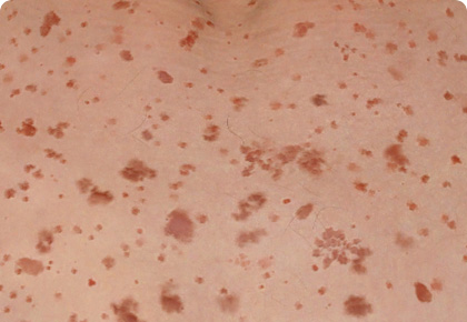 · 몸통에서 사지로 퍼지며 얼굴이나 햇빛 노출 부위에는 드뭄
