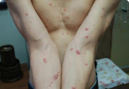 물방울 형태의 발진이 몸통과 전신에 발생합니다